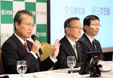 日本生命の筒井義信社長は同日、東京都内で開いた記者会見で「売り上げと利益の両方で、揺るぎない国内ナンバーワンを目指す」と語った。