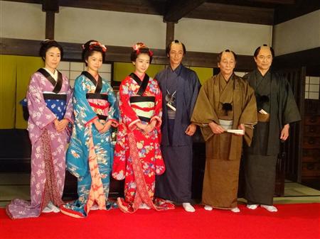 「あさが来た」の共演陣に囲まれたヒロイン役の波瑠さん(左から3人目)【拡大】