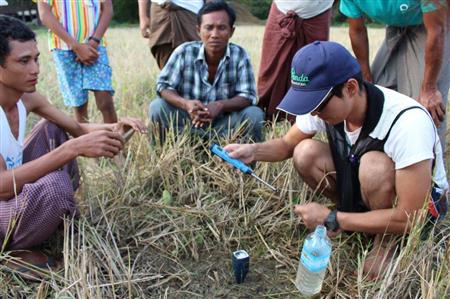 エーヤワディ管区周辺は、熱帯・亜熱帯気候でコメは年に2、3回収穫できる。田植えの後は自然に任せる形で栽培、間引きなどはせず、肥料も周辺国から持ち込まれる単純な化学肥料が過剰に使用されている。基本的には肥沃な土壌だが、連作により田が疲弊した状態だった。万田31号は、41種類の厳選された素材を3年以上、発酵・熟成させて製品化した農業資材で、栽培した大根が大型化するなど、とくに植物の根を著しく活性化する現象が報告されている。国内でも稲作、畑作、果樹園などで多くのプロ農家が使用している。疲弊した田に万田31号を使用することで、稲の根が活性化し、土中の養分を効率的に成長に使え、収量の倍増につながったとみられる。