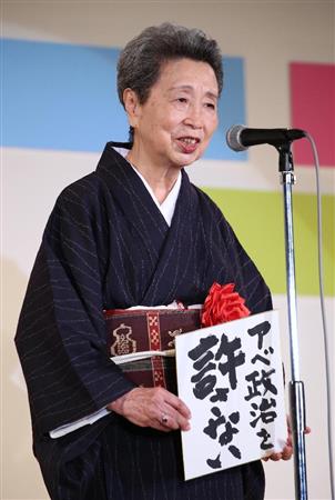 1日の式典でも、トップ10入りした「アベ政治を許さない」の発案者として表彰された作家の澤地久枝さんが「『アベ政治を許さない』(に関する活動)を毎月3日にやる。皆さんも参加を」と発言。政治的アピールに余念がなかった。
