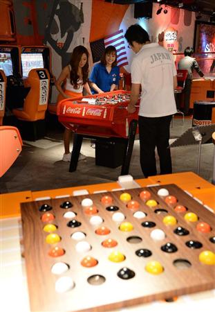 同店は、平成26年4月にオープンしたフーターズ渋谷店に併設。エアホッケーやテーブルサッカーなど対戦ができる9種類のゲームを楽しめる。ゲームスペースと飲み放題の利用で30分1500円から。