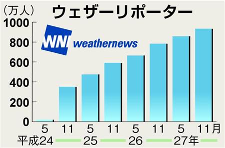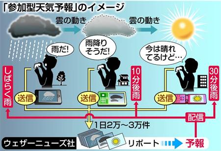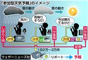 民間気象会社「ウェザーニューズ」(千葉市)が先進的に取り組む「参加型」天気予報が平成17年11月に始まって10年が経過した。天気を報告するリポーターは全国約900万人を数え、同社は次の10年へ世界展開を目指す。一方、観測に基づかない予報は「“感”測でしかない」(気象庁関係者)と信憑(しんぴょう)性に疑問の声も上がる。根付きつつある参加型予報の将来を“予報”してみた。(市岡豊大)