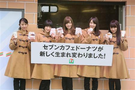 セブン-イレブン・ジャパンが全面刷新した「セブンカフェドーナツ」をPRする乃木坂46の(左から)桜井玲香さん、生駒里奈さん、白石麻衣さん、高山一実さん、秋元真夏さん)=18日、東京都新宿区【拡大】