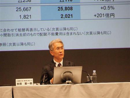 2015年4~12月期決算を発表するソニーの吉田憲一郎副社長兼最高財務責任者(CFO)=29日、東京都港区の本社【拡大】