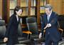 会談前に握手する丸川環境相(左)と林経産相=8日午後、経産省【拡大】