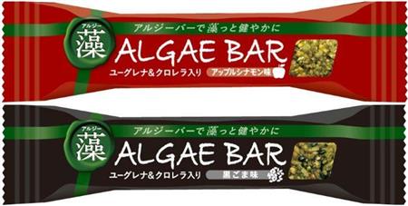 豊富な種類の栄養素を含む藻(アルジー)を日々の生活の中でも食べられるように開発したバータイプの菓子が登場。フレーバーは「アップルシナモン味」「黒ごま味」の2品。各172円。コンビニエンスストアなどで販売中。