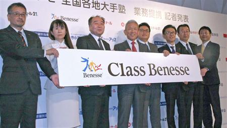 ベネッセと提携するのはエジュテックジャパン(さいたま市)▽信学会(長野市)▽寺小屋グループ(松山市)▽熊本ゼミナール(熊本市)-の4社。原田泳幸会長兼社長は会見で「生徒個人の進度にあった教材が提供できる」と提携のメリットを強調した。