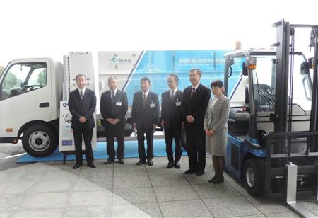 トヨタ自動車や東芝は14日、神奈川県と協力し、風力発電で製造した水素を燃料電池フォークリフトに供給する実証実験を今秋に開始すると発表した。二酸化炭素(CO2)を排出しない水素のサプライチェーン(供給網)モデルを構築するのが狙いだ。政府も2020年東京五輪で「水素社会」を世界にアピールしようとしており、こうした実証実験が各地で広がってきた。