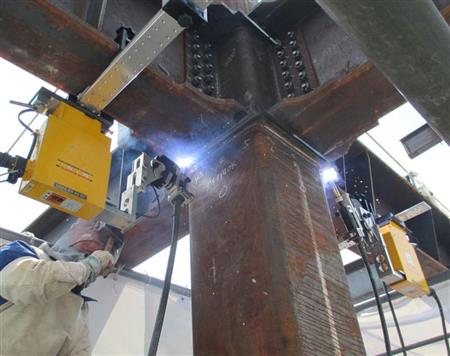 高齢化や若年層の入職率低下に伴う技能者不足が懸念される中、大林組の「現場上向きロボット溶接工法」は、鉄骨造り建物の柱と梁(はり)の溶接作業の省力化と高い耐震性を実現した。