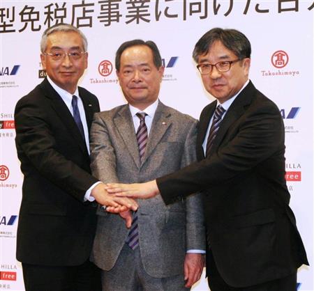 百貨店大手の高島屋は16日、ANAホールディングス子会社の全日空商事、韓国サムスングループのホテル新羅と合弁会社を設立し、消費税だけでなく関税やたばこ税なども免除される「市中空港型免税店」事業に参入すると発表した。2017年春に高島屋新宿店(東京都渋谷区)に1号店を開く。訪日外国人観光客に利便性をアピールすることで、「爆買い」需要を取り込む狙いがある。