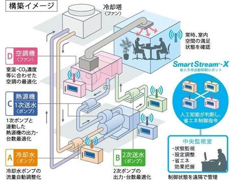 NTTグループの設計・エンジニアリング会社、NTTファシリティーズは、温室効果ガス排出や電力消費を最大で40%抑えることができる人工知能(AI)による水冷式の空調制御システム「SmartStream(スマートストリーム)」を改良し、空調機やポンプなど空調設備内の各機器に段階的に導入できる「スマートストリームX」を開発した。