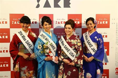 ミス日本酒2016の田中沙百合さん(左から2人目)、同USAのジェシカ・ジョリーさん(同3人目)ら【拡大】