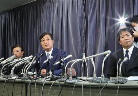 会見する益子修会長(中央)ら=11日午後、東京都千代田区(撮影・春名中)【拡大】