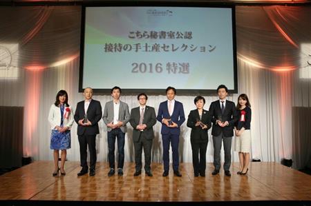 表彰された「接待の手土産2016」特選の6商品の代表=4月27日、東京都目黒区のウエスティンホテル東京【拡大】