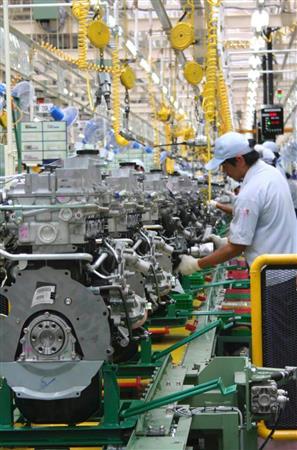 三菱自動車の主要生産拠点であるタイ工場のエンジン生産ライン【拡大】