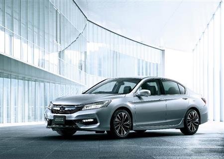 ホンダは26日、新たなハイブリッド技術を採用した上級セダン「アコード」の新型車を発売した。国が路上に設置した通信装置から信号情報を検知し、停止時の青信号までの時間などをメーターに表示する機能を世界で初めて採用した。