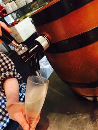 「ワインde鶏バル」で提供している樽詰スパークリングワイン(1杯500円)。飲み放題のコースでも楽しめる【拡大】