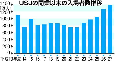 大阪市のテーマパーク「ユニバーサル・スタジオ・ジャパン(USJ)」が開業15周年を迎えた。映画「ハリー・ポッター」をテーマとしたエリアなどの人気で、昨年の入場者は1390万人と東京ディズニーシーを抜いて世界4位に浮上。多くの訪日客を受け入れ、関西経済の牽引(けんいん)役としても存在感が増す。今年、“宣伝役”のPR大使に元プロテニス選手の松岡修造さんを起用。「リ・ボーン(生まれ変わり)」をテーマに、新アトラクションやさまざまなイベントを計画する。(藤原直樹)
