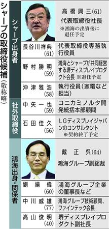 鴻海の郭台銘会長にしてみれば、両社の共同出資会社会長を平成24年から務める「腹心」だ。鴻海は6月末までとする出資完了後、次期社長として送り込む戴正呉副総裁と野村氏の2トップに権限を集中させる。