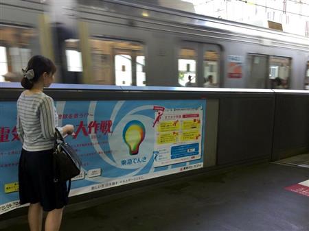 節電特典を告知する駅のポスター=17日、東急二子玉川駅(東急パワーサプライ提供)【拡大】