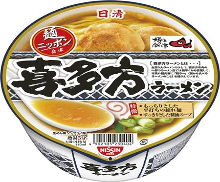 喜多方ラーメンの特徴である平打ちの縮れ麺を「生めん風ノンフライ麺」で再現。すっきりと透き通ったとんこつベースのしょうゆスープと合わせた。238円。販売中。