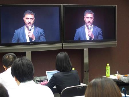 ソフトバンクグループ株主総会で副社長退任のあいさつをするニケシュ・アローラ氏=22日、東京都千代田区【拡大】