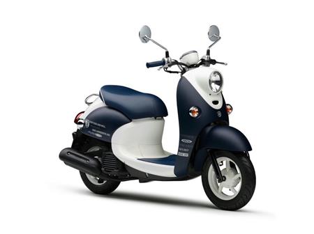 原付きスクーター「ビーノ XC50D」をベースに新色のマットブルーや専用グラフィックをハンドルグリップなどに施した。20万4120円。1000台限定で20日発売。