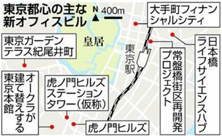 東京都心部でオフィス賃料の上昇が続く中、不動産大手が個性を際立たせたビル開発を競っている。大手町(千代田区)では4日、三菱地所の「グローバルビジネスハブ東京」がオープンした。大企業が集積する丸の内地区にあえてベンチャーを呼び込む。オフィス供給量の急増に伴って空室率上昇が予想される「2018年問題」を前に、各社が新機軸の試みでテナントの確保を目指す。