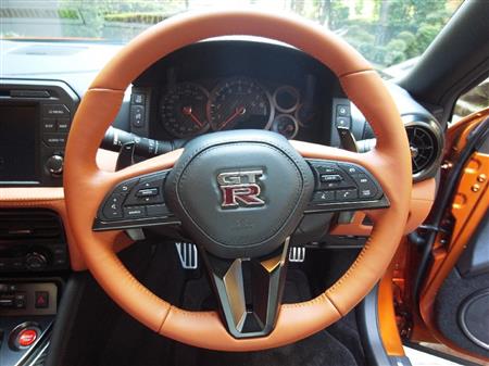 同社の技術者から選抜された熟練5人の「匠(たくみ)」が手で組み立てるエンジンは、排気量3・8リットルのV型6気筒のツインターボを搭載。エンジン出力は570馬力と現行モデルより20馬力高めた。内装も計器類パネル周りを1枚の本革で装飾するなど高級感を演出した。