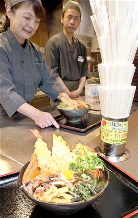 駅構内で営業する「駅そば」で“夏の陣”が勃発(ぼっぱつ)した。ポテトフライを具にした「ポテそば」が大ヒットした「阪急そば若菜」が、今度は「かき氷」とコラボレーションした「かき氷そば」を売り出した。冷たい氷でそばがさらに締まり、うまさが増すという夏にぴったりの一品だ。これに対し、「南海そば」はエビ天など10種のトッピングをこれでもかというほど山盛りにした「具が多すぎるそば」を発売した。阪急vs南海。往年のプロ野球パ・リーグのカードをも彷彿(ほうふつ)させる。新メニューをひっさげ、関西の名門私鉄のプライドを賭けた戦いの幕が切って落とされた。(橋本亮)