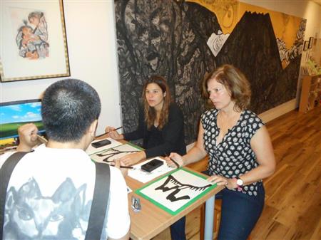 東京・神保町のギャラリー「豊國アトリエ」にアルゼンチン人母子が訪れた。訪日客向けに開催している「Sumi-e Class Experience(墨絵おえかき)」(1人2000円、1時間)を体験するためだ。