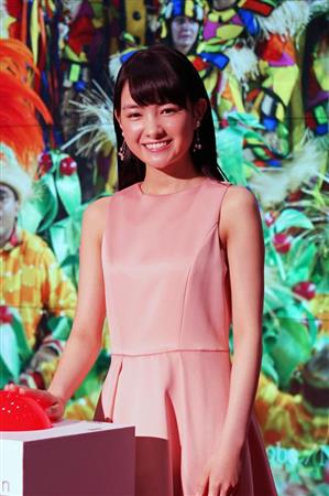 「NHKスーパーハイビジョン」試験放送開始記念式典に出席した女優の葵わかなさん=1日、東京都渋谷区のNHK放送センター【拡大】