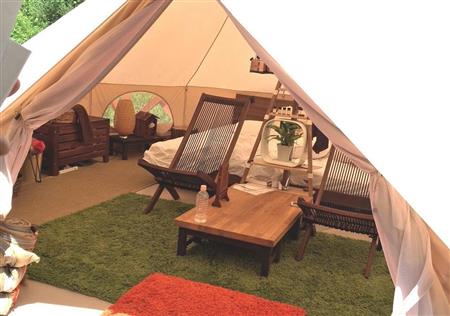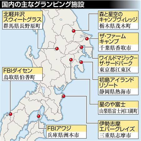 テント設営や炊事など面倒な作業を専門スタッフに任せて自然を満喫できる新しいキャンプスタイル「グランピング」の人気が急上昇しそうだ。自然の中の宿泊やホテル並みの食事とサービスが受けて、各地に相次いで施設がオープン。1日に開業した千葉の施設でも、すでに夏休み中の予約がほぼ埋まっているほど。キャンプ初心者や訪日観光客も手軽に日本の自然を楽しめるグランピングに旅行業界や政府も熱い視線を送る。