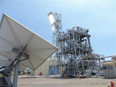 三菱日立パワーシステムズ(MHPS)は4日、横浜工場(横浜市中区)で二酸化炭素(CO2)を排出しない「太陽熱発電システム」の実証施設を公開した。集光装置で太陽熱を集め、高温蒸気を生成し、蒸気タービン発電機で発電する仕組み。太陽光発電よりも日射量に左右されず、安定的に発電でき、熱の貯蔵も可能で天候が悪くても電力供給できる。