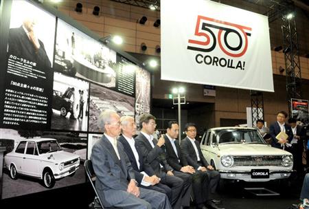 トヨタが5日、会場内で開いたカローラの生誕50年の記念イベントでは、10、11代目の開発を担当した安井慎一常務理事が出席。安井氏は「安心、安全、信頼という価値は変えず、新技術の搭載など変えるべきところは変え、次の50年へたすきをつなぐ」と述べた。