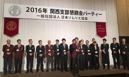 日本ソムリエ協会関西支部の懇親会パーティーで紹介される同支部の役員や委員ら=3日、神戸市中央区【拡大】