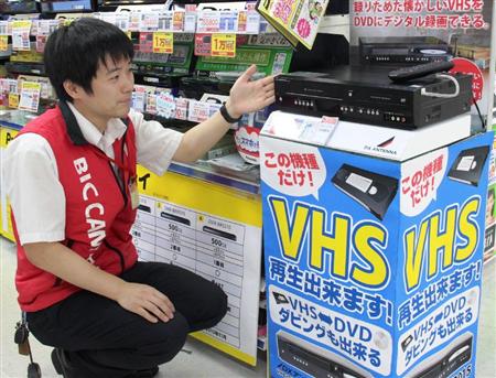 入手可能なVHS方式のビデオデッキは、一部の家電量販店などの在庫分だけだ。船井電機製を販売している家電量販店大手「ビックカメラ新宿西口店」(新宿区)の家電製品アドバイザー、石川貴大さんは「ビデオ全盛期を経験している40~60代からの問い合わせが多い」と指摘。7月中旬以前は、月に数台売れる程度だったが、最近は1日10台以上が売れることも。石川さんは「VHS方式のビデオテープは劣化しやすく、映像が乱れることもある。早めに他のメディアに転換しておくことを薦めたい」と話している。(中井なつみ)