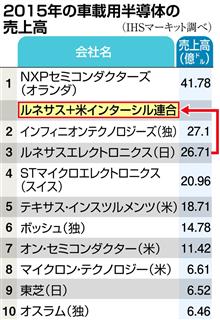 車載用半導体市場は昨年から大型再編が起こり、ルネサスは世界シェア首位から3位に後退しており、インターシルの買収で巻き返しを図る。