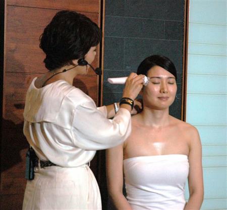 フィリップスの美顔器「ビザピュアアドバンス」のデモンストレーション=23日、東京都港区【拡大】
