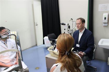 外国人患者の問診を通訳する聖路加国際病院の担当者(右)【拡大】