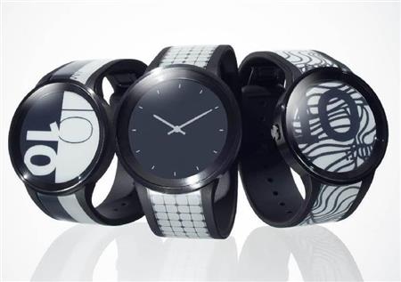 既に市販されている「FES Watch」は文字盤とベルトを1枚の電子ペーパーで作り、デザインをプリセットされた24パターンから選ぶことができる。