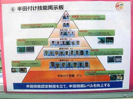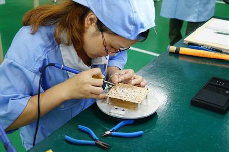 東芝情報機器杭州社で、実際にラインで作業する中国現地スタッフの「全能工」【拡大】