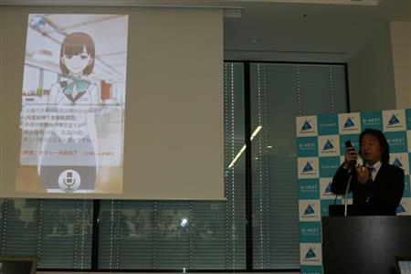 アドバンスト・メディアによる人工知能を活用した自動応答技術のデモンストレーション=14日、東京都千代田区【拡大】