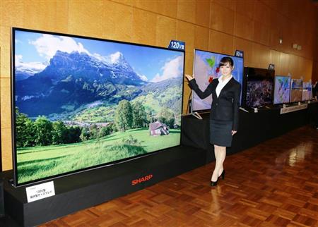 シャープが披露した4Kテレビ=20日、東京都港区【拡大】
