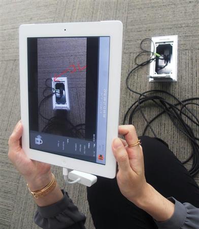新ARシステム「ビスタファインダーMxクラウド」は、スマホやタブレットなどで撮影した映像を遠隔地のパソコンに生中継。パソコン画面を見たベテラン技術者などが、映像に手書きで「ココは違う」などの指示を書き込むと、現場の作業員のスマホ画面に転送される仕組みだ。