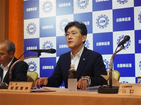 記者会見する自動車総連の相原康伸会長=29日、東京都港区赤坂【拡大】