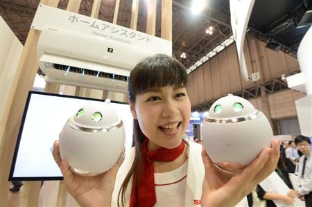 「CEATECJAPAN2016」で公開されるシャープのホームアシスタント。エアコンなどをつけてくれるという=3日、千葉・幕張メッセ(伴龍二撮影)【拡大】