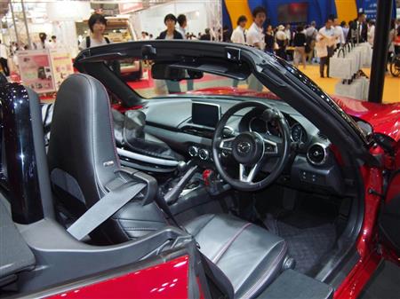 手動で加減速できる装置を搭載したマツダのスポーツ車「ロードスター」=12日、東京都江東区の東京ビッグサイト【拡大】