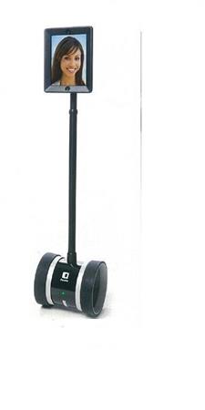 「Double 遠隔プレゼンスロボット」は、ビデオ会話によるテレコミュニケーション用のツール。タブレット(iPad Air推奨。別途用意)を取り付けることで、遠隔地とのビデオ会話を実現する。遠隔操作によって低速歩行~早歩きまでの速度で駆動する。そのほか、広角レンズ、拡声スピーカー(オプション)、高さ調整機能、セルフバランス機能などを備える。高さは119~150cm(遠隔制御可能)。