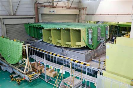 富士重工業は24日、米航空機大手ボーイングの次世代旅客機「777X」の中央翼を製造する半田工場(愛知県半田市)の新工場棟を報道陣に初公開した。最新鋭の生産設備などを導入し、今年度内に稼働を始める予定。777X向け部材には東レや川崎重工業など日本メーカーが参画しており、2020年の初号機納入を見据え、設備投資が活発になっている。